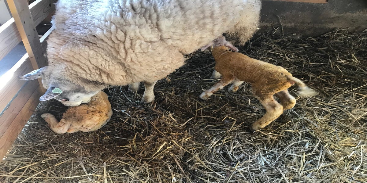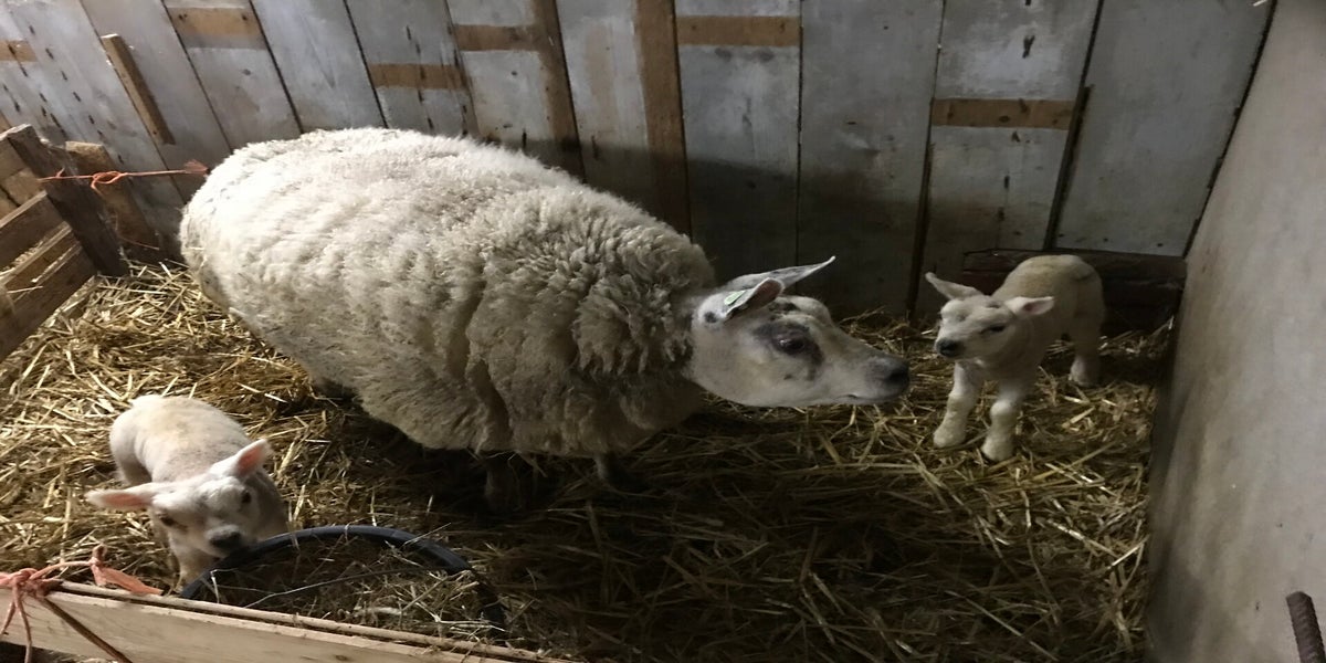 Na een valse start met 2 schapen ruim 2 weken voor de aflamdatum verworpen zonder aanwijsbare reden, nu schaap met 2 gezonde lammeren(ooi en ramlam met als vader 5629-92720 A-Ram) Betreft ooi 44164, de moeder van ram 70 en 71 (88/88), laatstgenoemde is op Texel en hebben de A-Ram ook als vader,