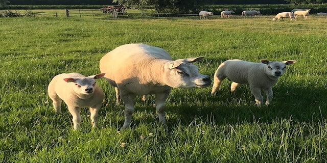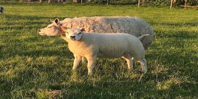 Luxe blikvanger in de wei is ramlam: 9256, geboren 23 maart j.l. Zoontje van ram 586-06110. Moeder is een 346-58901 K dochter.