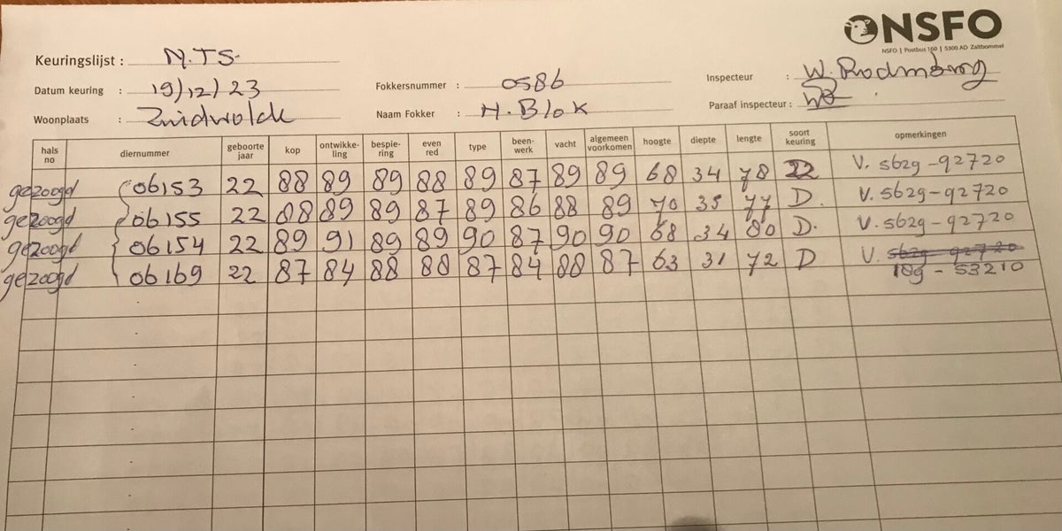 2 oudere ooien herhaald opgenomen in het stamboek. Dit als afsluiting van de herfstinspectie ronde 2022.
